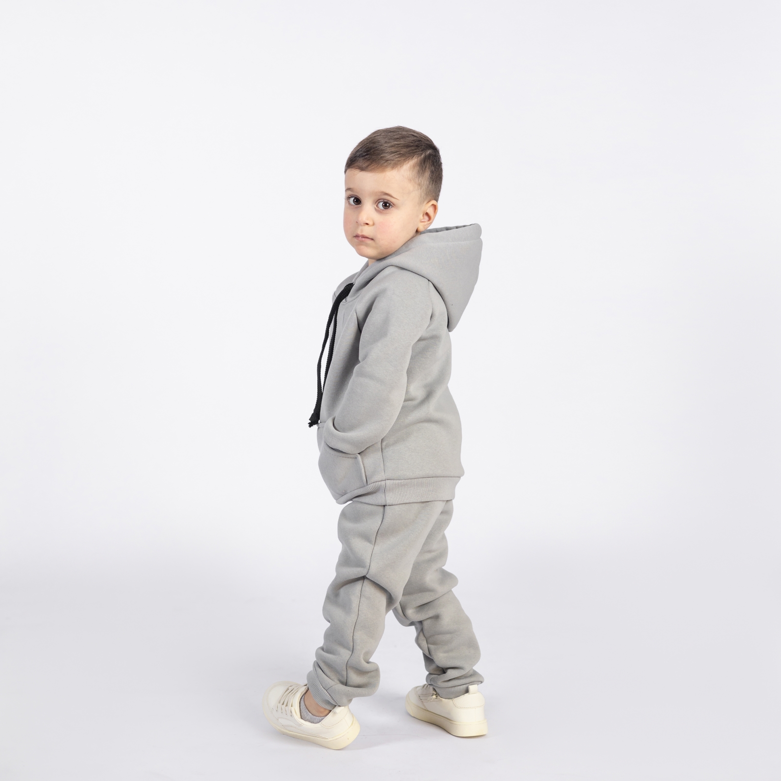 Купить оптом 296-С. Свитшот с капюшоном + Штаны, хлопок 65%, 35% ПЭ, 3-х нитка (начес) серый 146,152,158 в Владимире